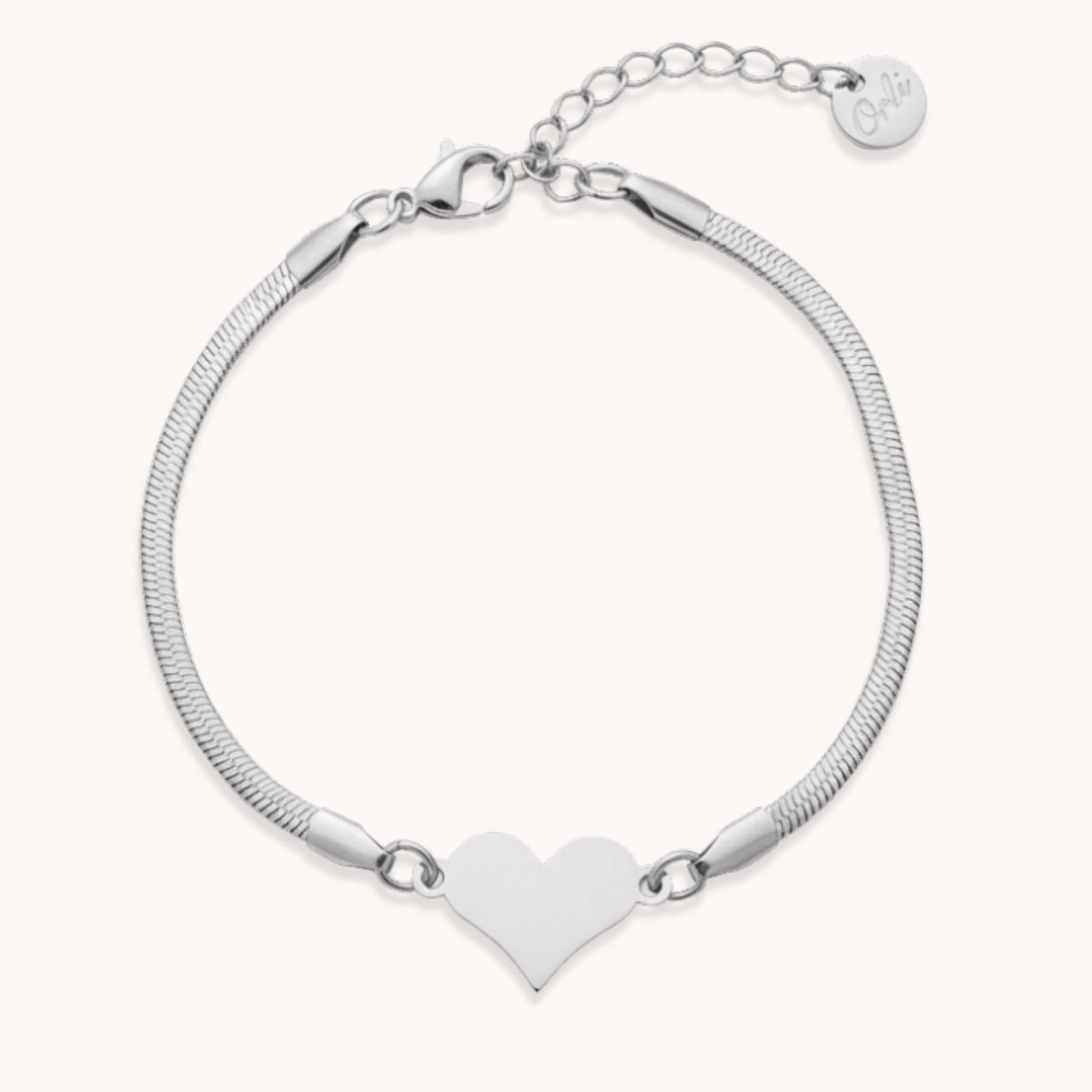 30B2056 - Snake Chain Heart Bracelet in Silver