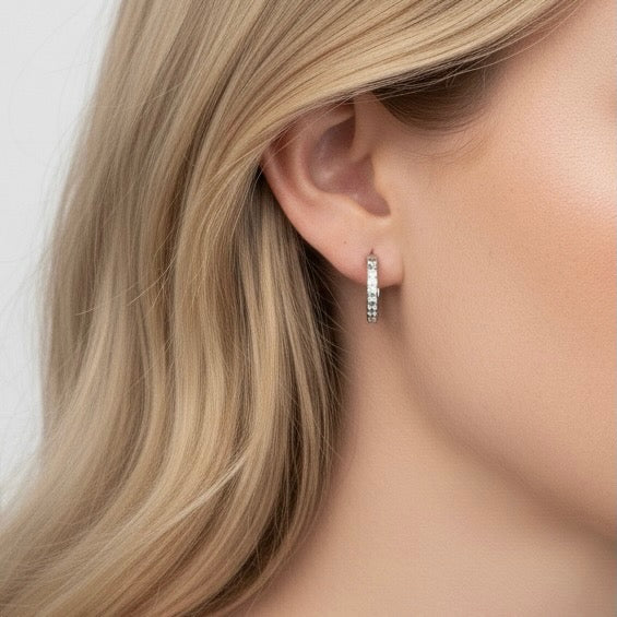 Add a subtle sparkle to your ears with these delicate crystal huggie earrings, perfect for everyday wear.