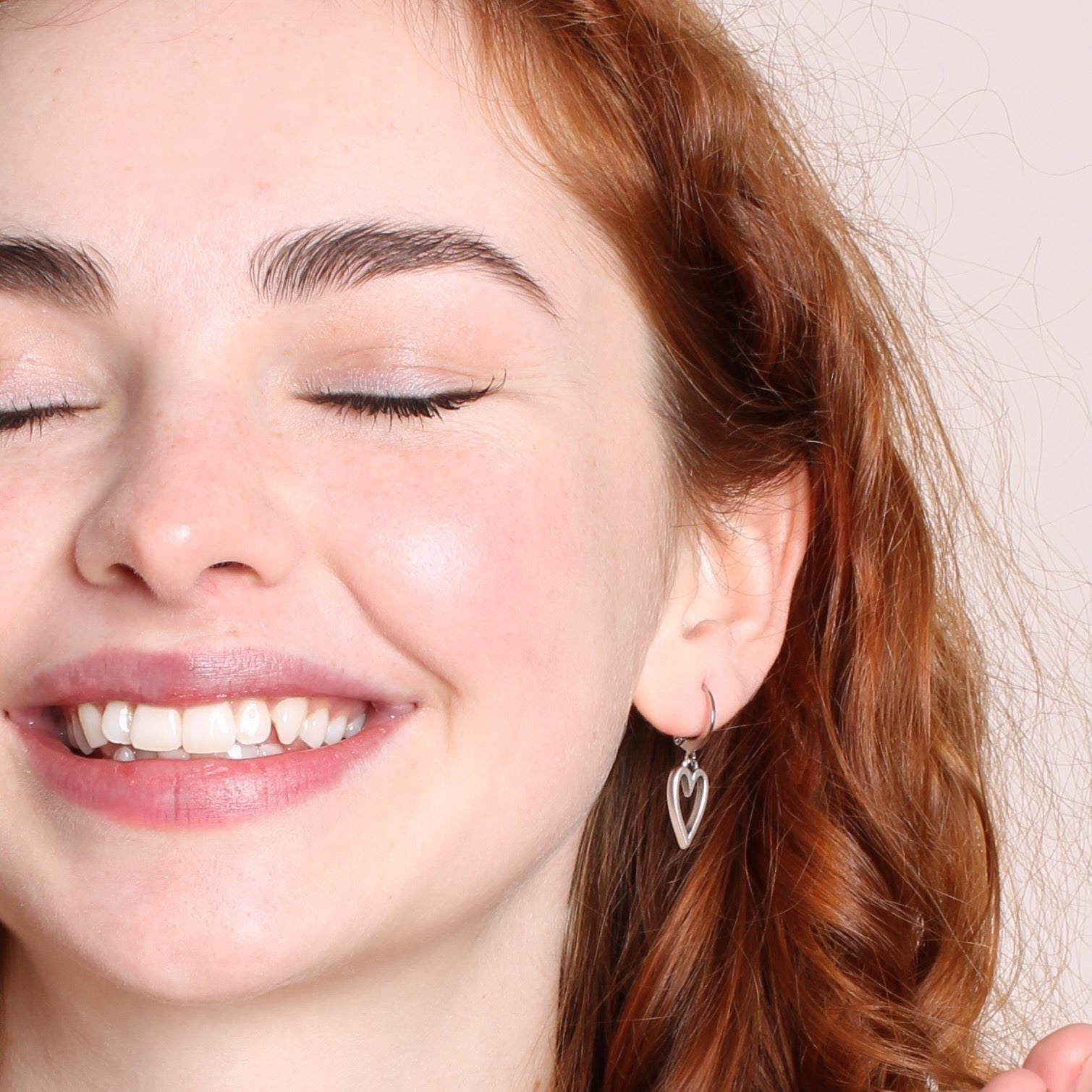 Add romance to any look with the Open Heart Huggie Hoops. Designed in our timeless Huggie Hoop style, these earrings feature a delicate open heart charm. Wear alone or stack to your heart's content for a curated look.