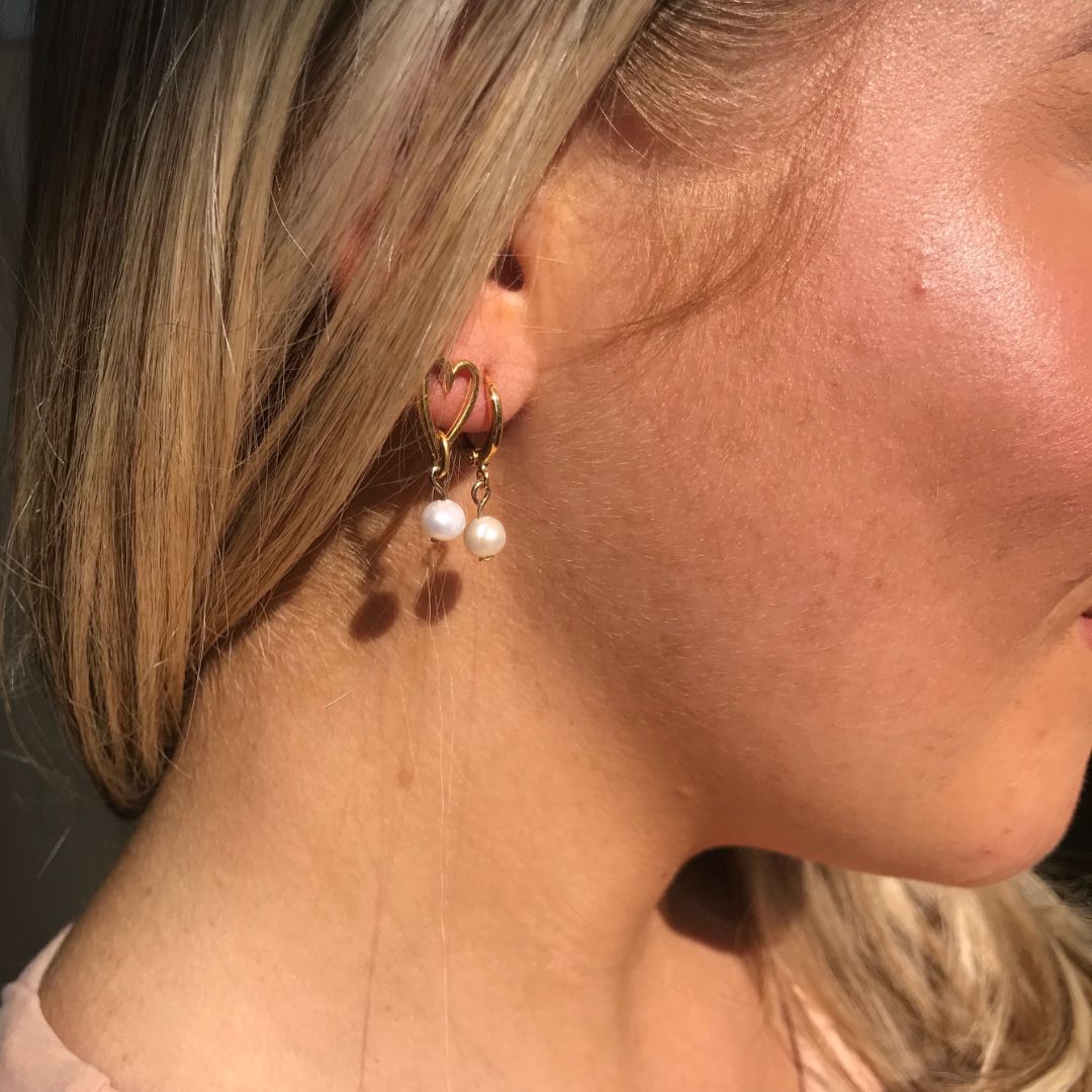 Stay on trend with these stunning huggie hoops with freshwater pearls!