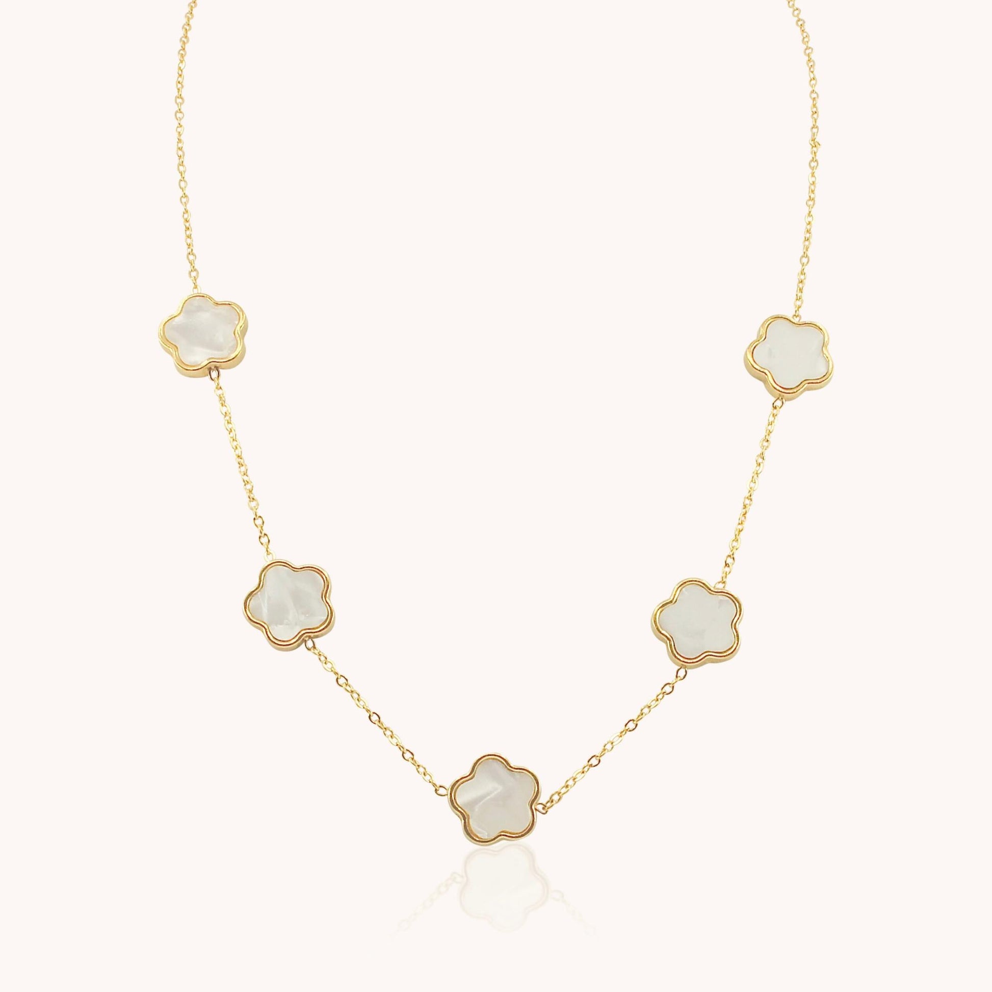 An elegant white clover necklace that brings a fresh and sophisticated touch to any look.