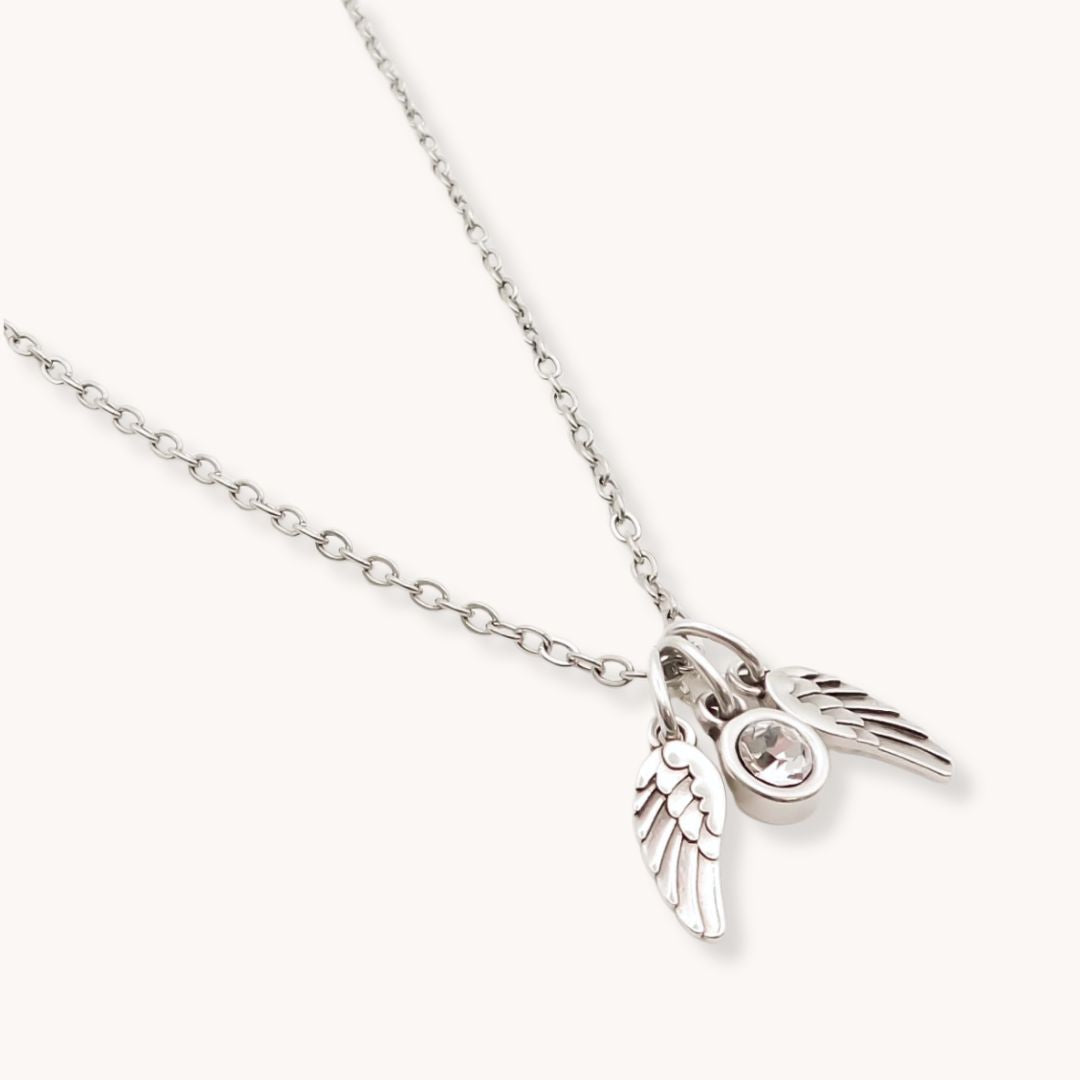 30N1634 - Twin Angel Wings & Birthstone Necklace, Silver