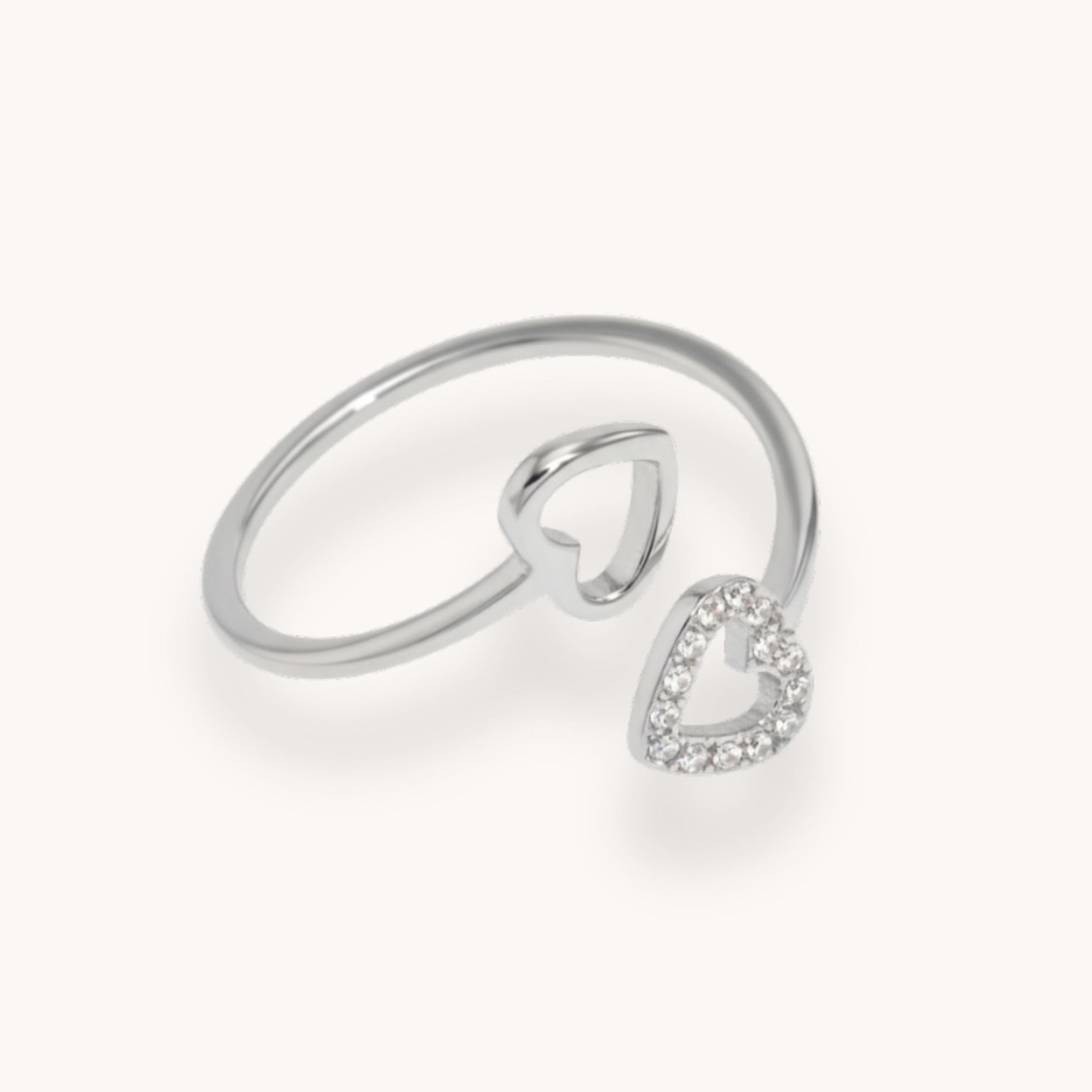 Timeless and versatile, the Halo Heart Ring pairs two silver hearts – one sleek and minimal, the other surrounded by a halo of sparkling stones. A contemporary twist on classic romance.