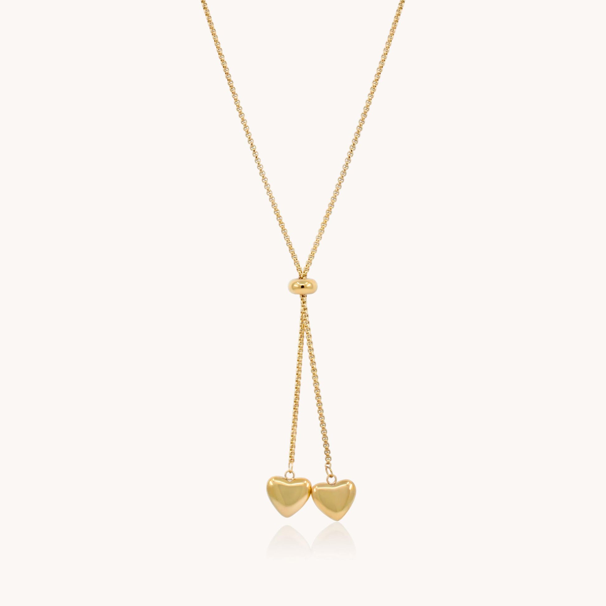 30N1813G - Twin Hearts Adjustable Necklace, Gold